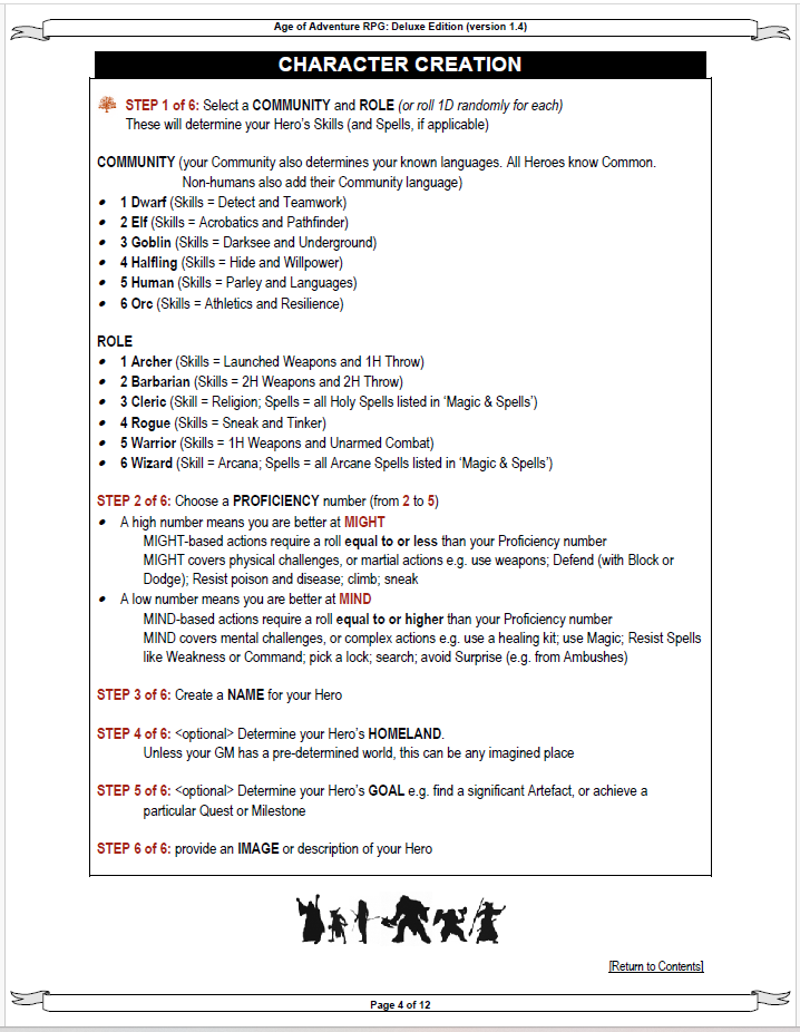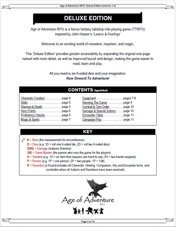 Check out the One-Page version if you are looking for all the rules referenced on one-page https://adrian-young-games.itch.io/age-of-adventure-rpg